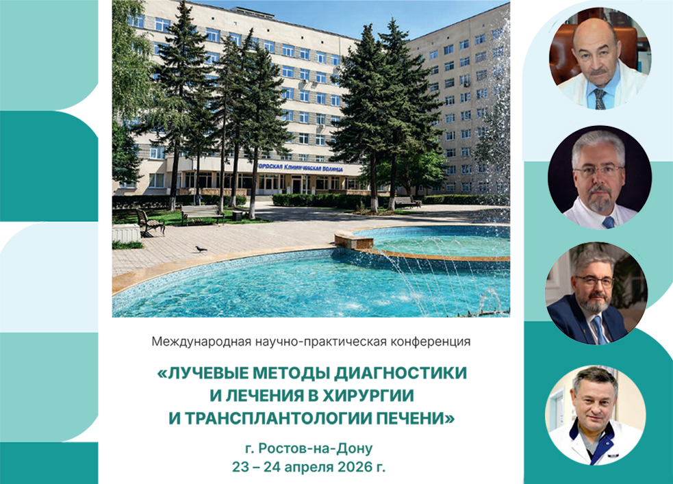 Оргкомитет Международной научно-практической конференции «Лучевые методы диагностики и лечения в хирургии и трансплантологии печени» под председательством академика РАН С.В. Готье, академика РАН А.В. Шабунина, член-корреспондента РАН А.Ю. Васильева, профессора В.Л. Коробки приглашает 23-24 апреля 2026 года всех заинтересовавшихся данной темой специалистов в Ростовскую областную клиническую больницу.